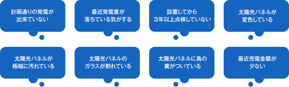 不具合があった場合、売電収入に大きく影響するため早めの点検をおすすめします。