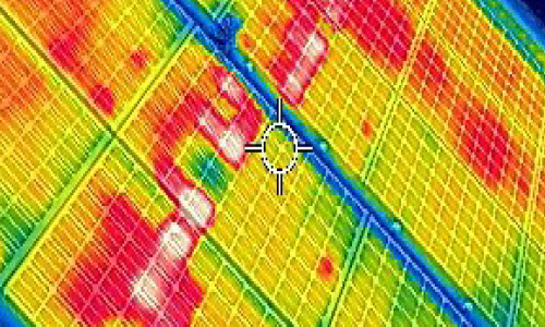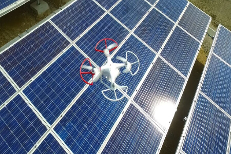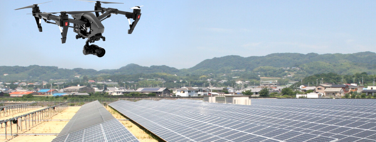 ドローン×サーモカメラの空撮により、太陽光発電パネルの異常個所を発見し、従来の人手による点検作業が省略化できます。